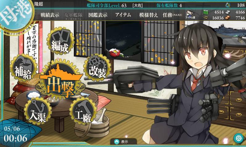 武蔵は実装後8回目位の大型建造で来てそのまま育成。さすがに一体居るだけで安心感が全然違います。初霜のために大和も欲しですがあと何回かかるのやら…
