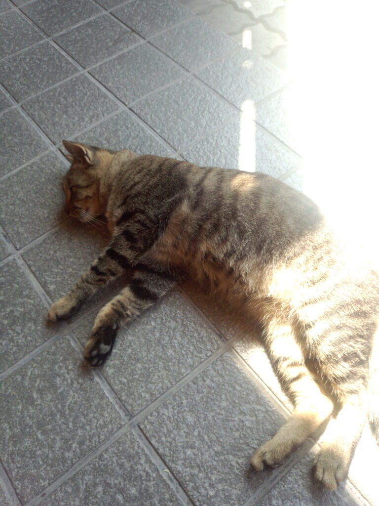 何と風呂場に畳がある。階数は6階だが、却って目の前に海が迫っており、寝湯に浸かると正面から眺める事が出来、なかなかの迫力。上の猫は昨年に撮ったものだが、交通事故にあってお亡くなりになってしまったらしい。図らずも最初で最後の触れ合いになってしまいました…