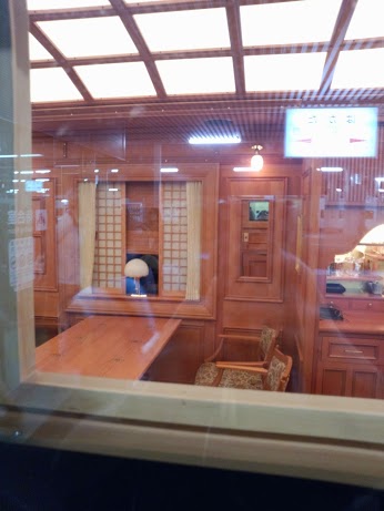 博多でSEVEN STARS(たばこではない)が停まっているところに、たまたま出くわせたので、中撮ってきた。ふむ、まさに「客室」という風格。電車がここまで綺麗だと、かえって寛げない気もするけどね。寧ろ敢えて蛍や鈴虫などを放って、電車内で自然を満喫できるようなプランはどうだろう?