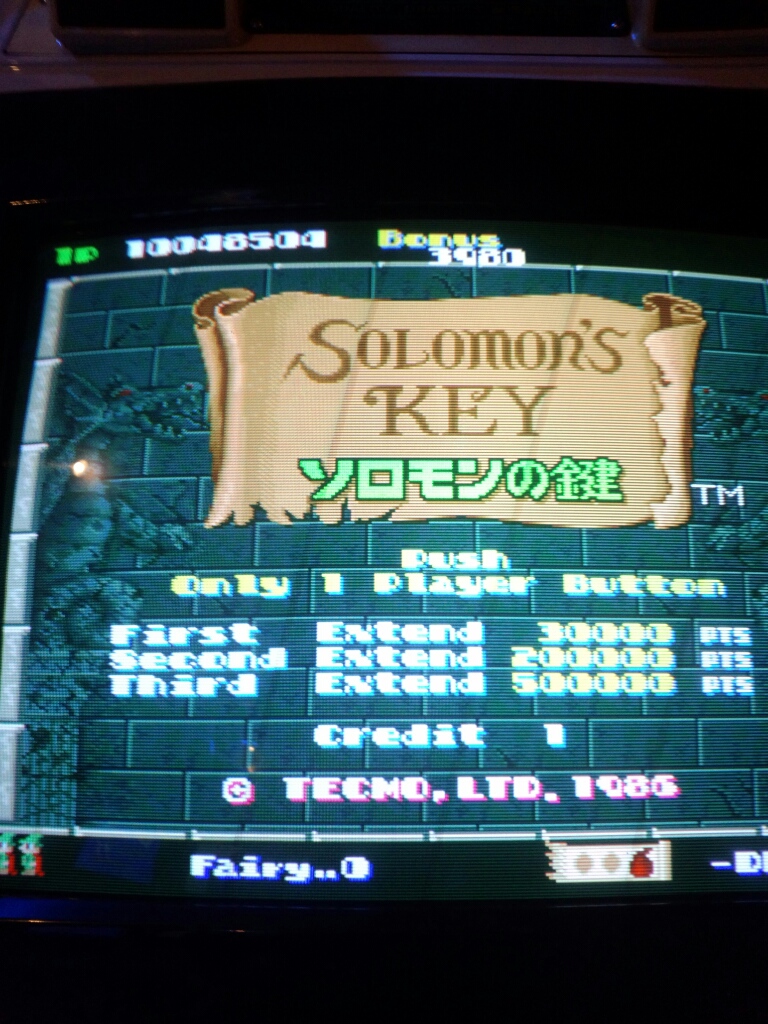 まずはソロモンの鍵サイトを一応持っている身として、一階にあったアーケード版ソロモンの鍵を実機で十年ぶりにプレイ。メンテよくて操作しやすくて感動しました。